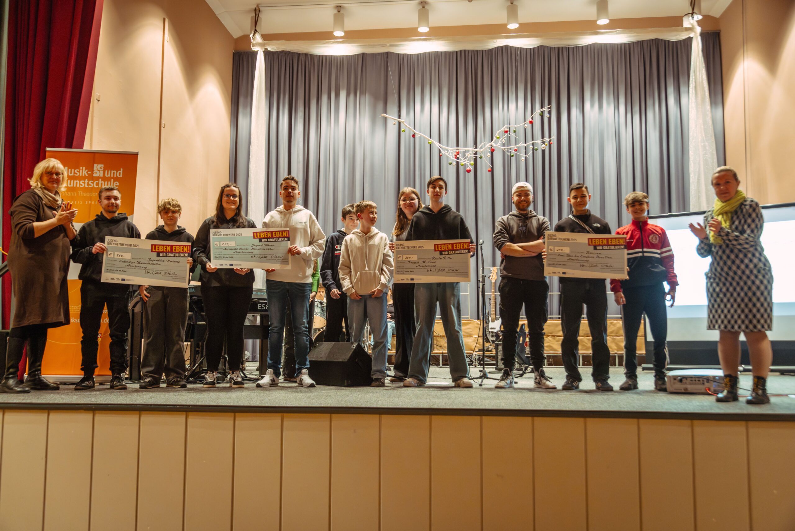 Mit der Preisverleihung endet der Jugend-Ideenwettbewerb 2025 „Leben eben!“. Erste Rückmeldungen zeigen, dass die Teams ihre Ideen nun gemeinsam mit ihren Projektpatinnen und Projektpaten umsetzen möchten. Die Lokale Aktionsgruppe Spree-Neiße-Land e. V. freut sich darauf, diese Entwicklungen zu begleiten und steht weiterhin unterstützend zur Seite.