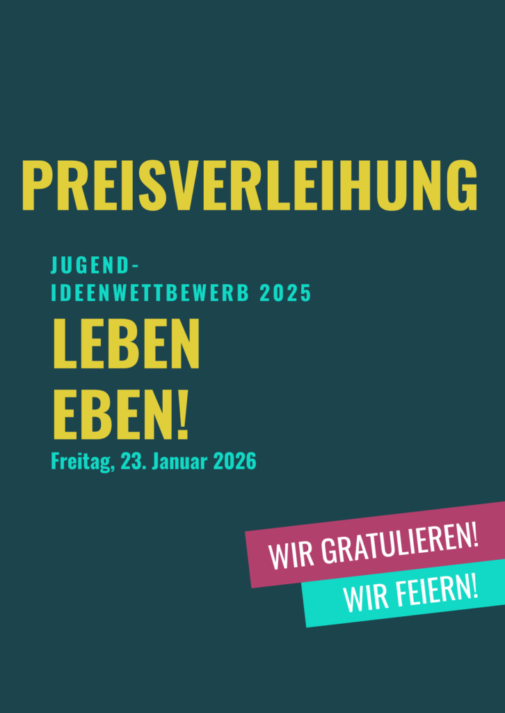Eine siebenköpfige Jury, darunter auch drei Jugendliche und junge Erwachsene, wählte aus den eingereichten Beiträgen die überzeugendsten Ideen aus. Die Spannung war groß, denn die Projektteams erfuhren erst an diesem Tag, welche Platzierung sie erreicht haben. Ausgezeichnet wurden: